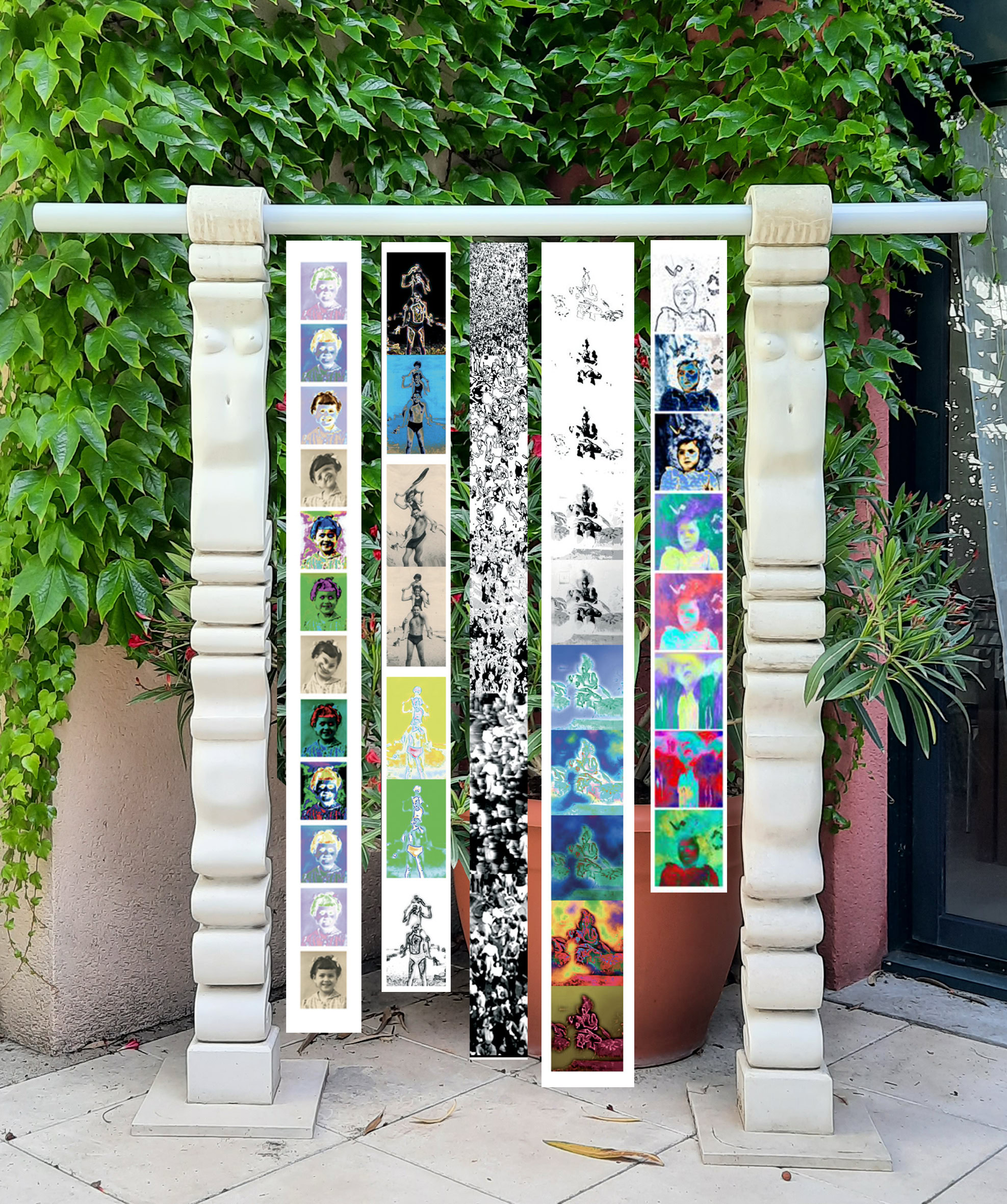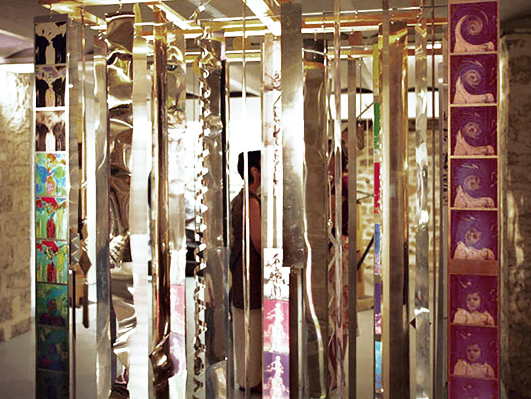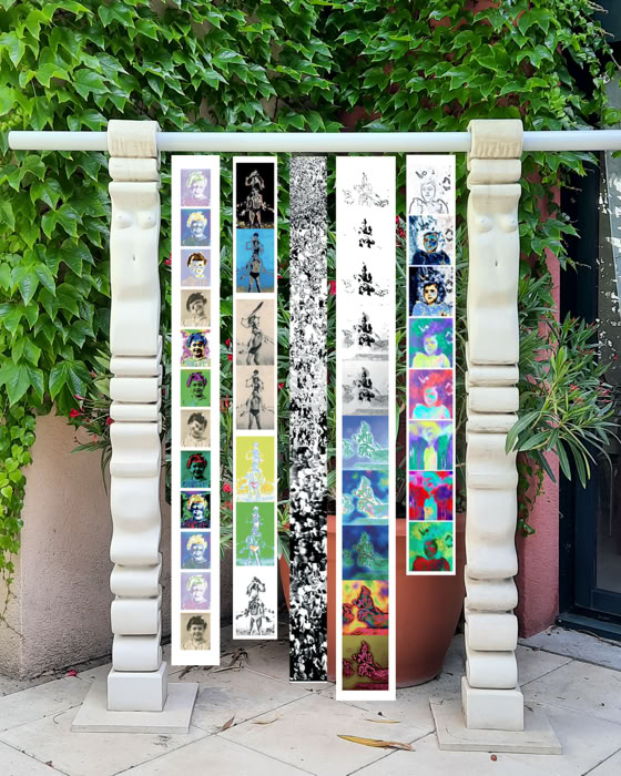 Bandes de 'polyvisions' imprimées sur différents supports et mises en suspenssion lors des installations modulables et multi-média :