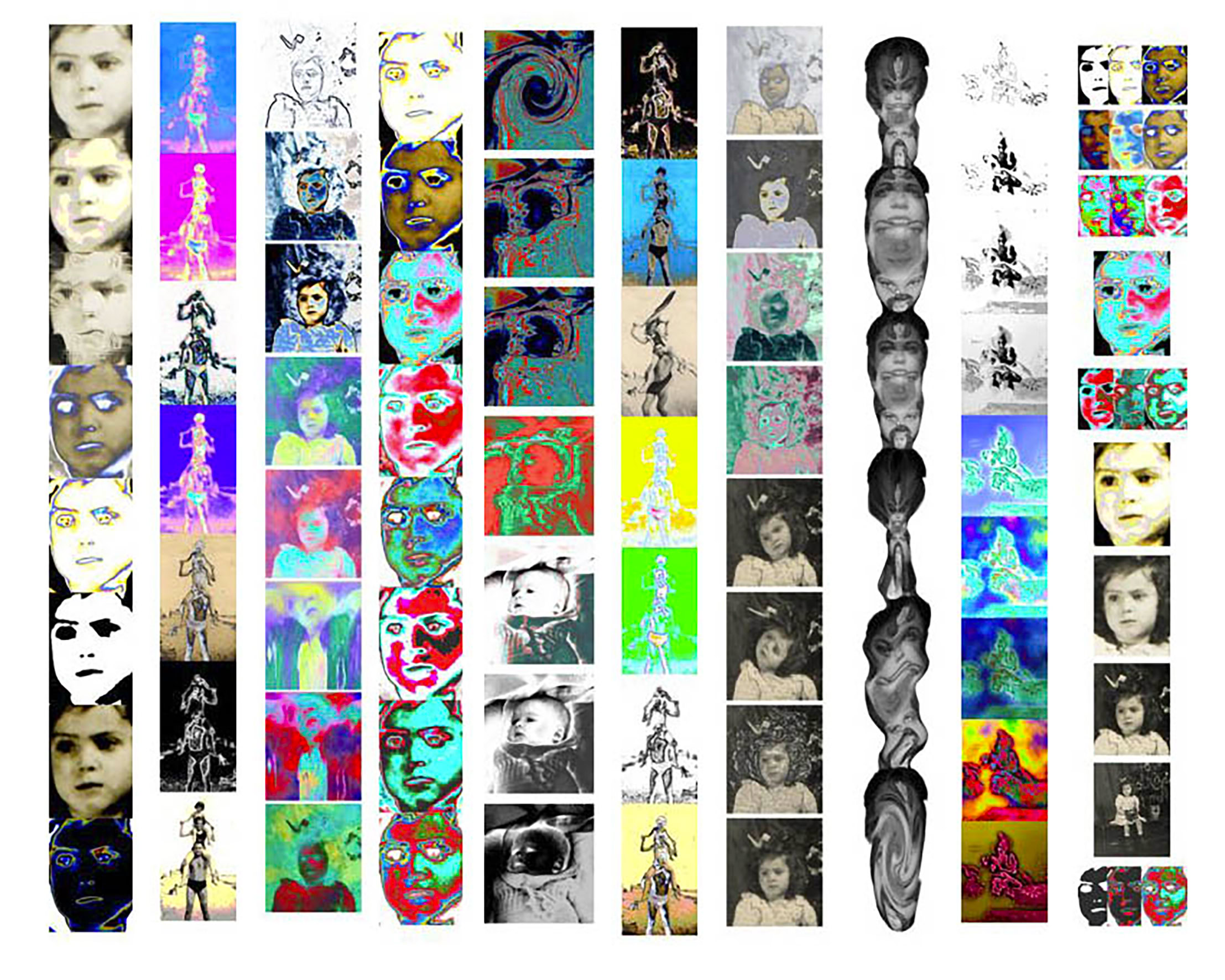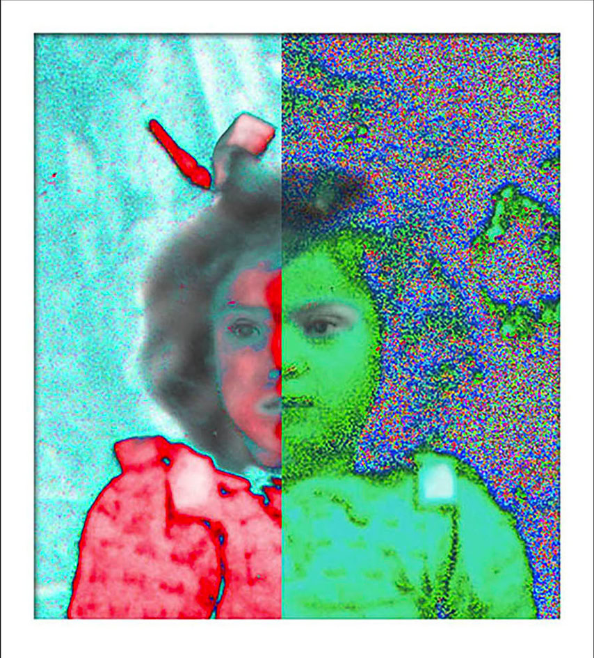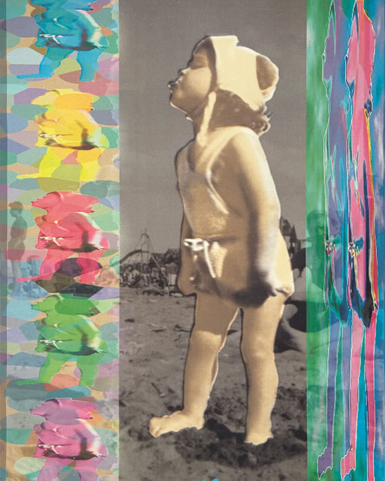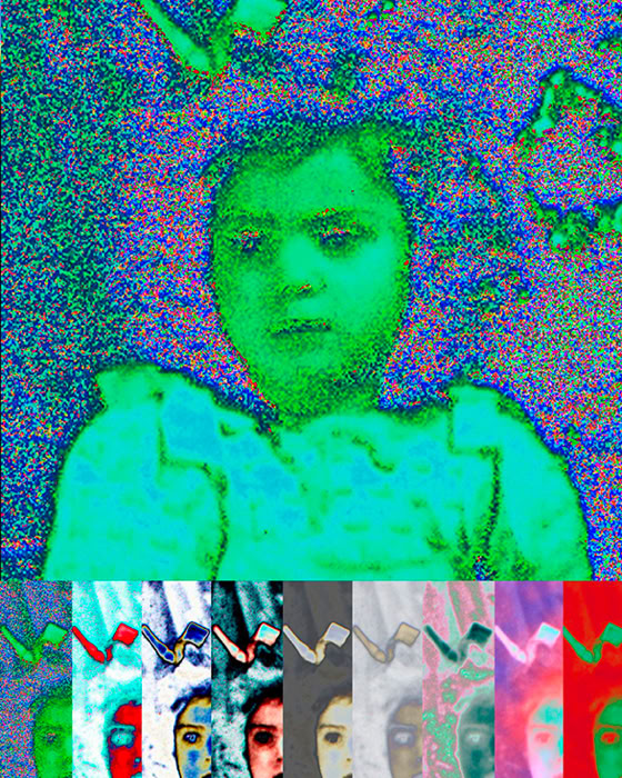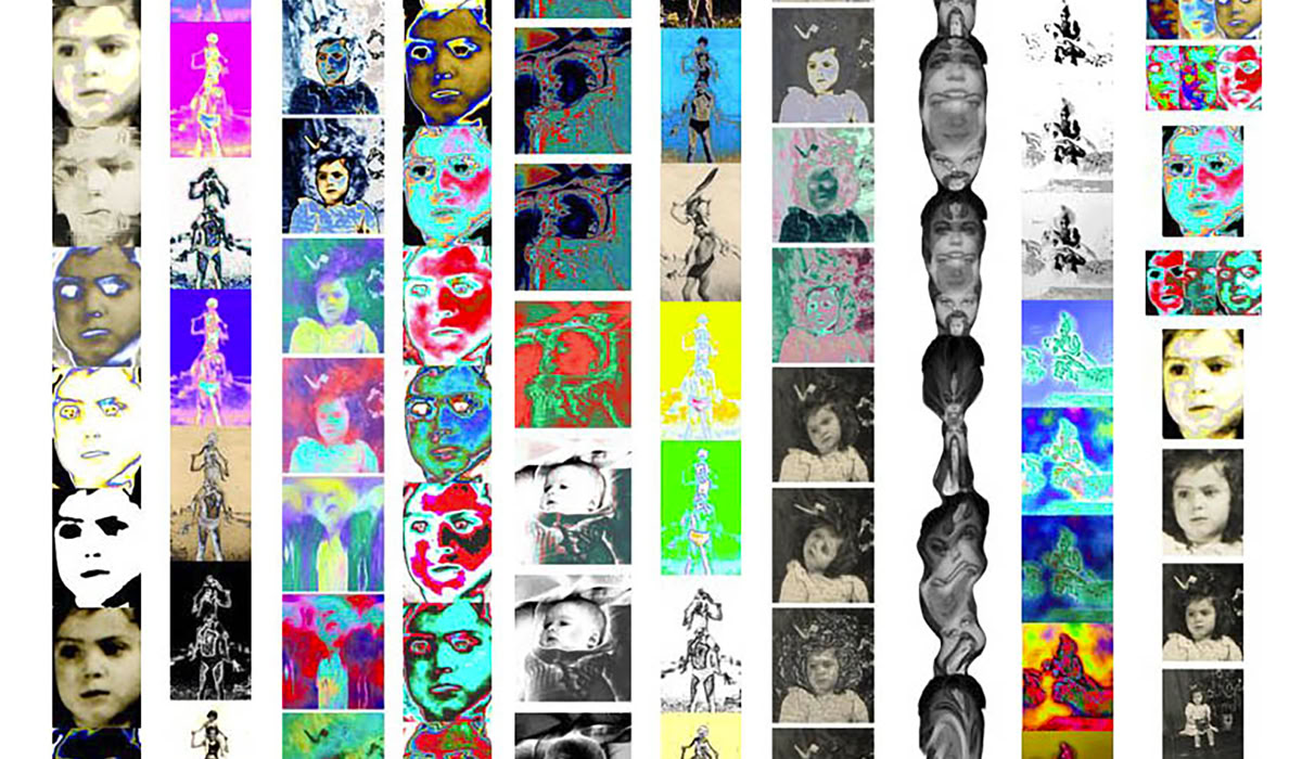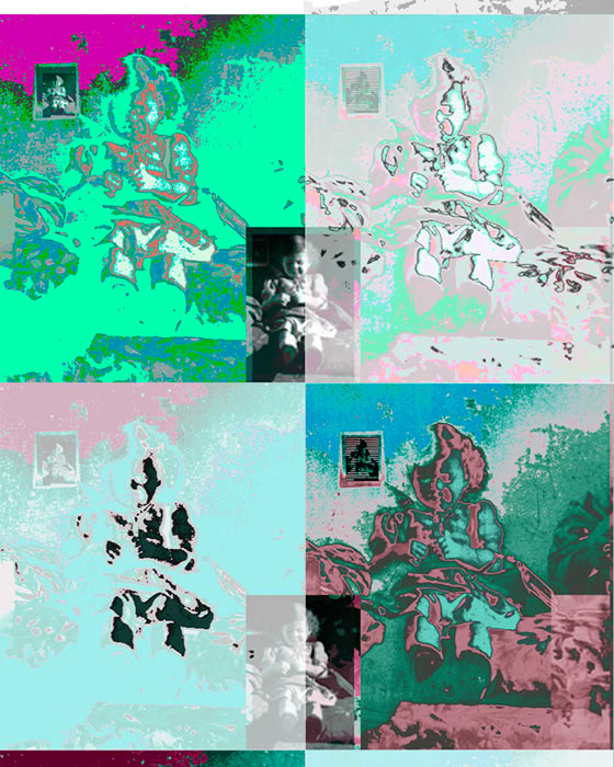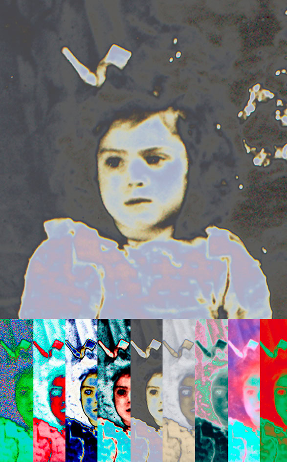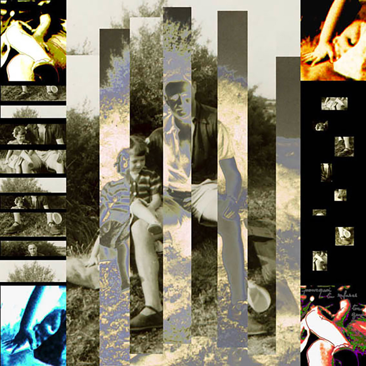 L'album de famille, petits clichés, en noir et blanc, sur papier glacé, jauni et dentelé, revisité par l'artiste à la suite du décès de son père, prend des tonalités et des tournures inattendues.