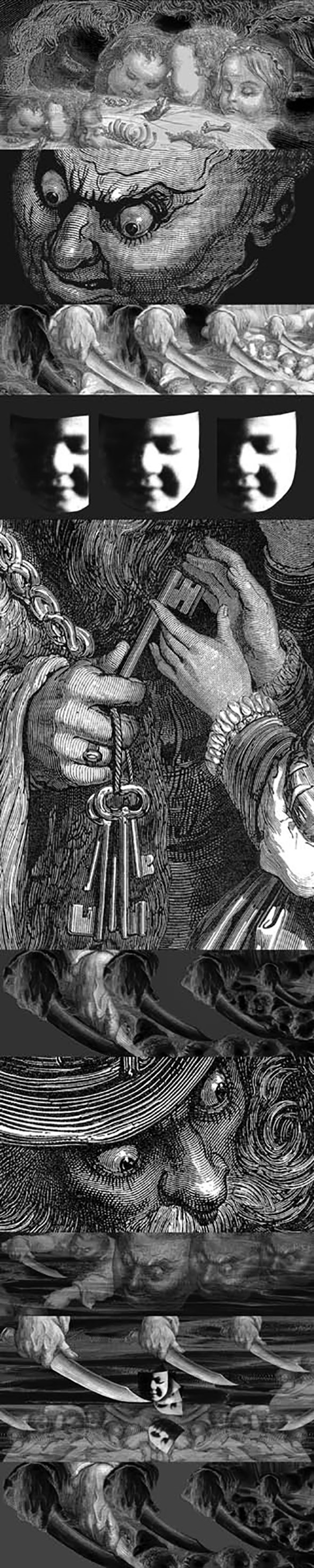 Le grand vieux livre à couverture rouge, des contes de Charles Perrault, chargé de lourdes réminiscences, devient, lui aussi, porteur d'une nouvelle source d’inspiration, en même temps que d’une résurgence émotionnelle, révélatrice :